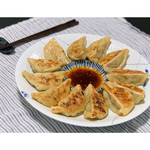 Gyoza is the Japanese take on dumplings inspired by the Chinese version jiaozi (餃子). It is a popular food in Japan, made by wrapping a mixture of ground pork, cabbage, chives, or other ingredients inside a thinly rolled piece of dough. Gyoza can be pan-fried, boiled, steamed, or even deep-fried and is usually served with a soy-based dipping sauce.