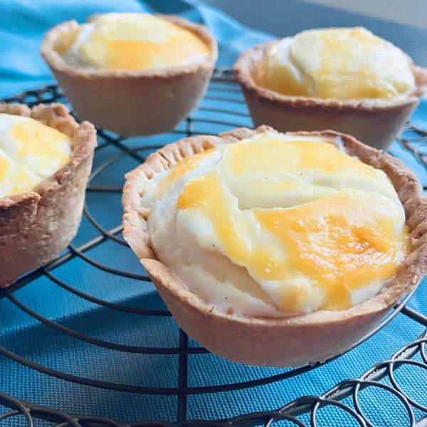 They're a culinary delight originating from Japan's northernmost island, Hokkaido. Resembling egg tarts with their size and golden-brown crust, they offer a heavenly blend of buttery, flaky crust and rich, creamy cheese filling.