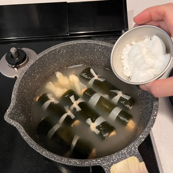 In this recipe, we will be using "Hidaka Kombu." With this type of Kombu, you can create soft and flavorful Kombu rolls. This Kombu variety complements dishes like Kombu rolls, Oden, and is, of course, perfect for making Dashi soup stock. Enjoy preparing delectable Kombu dishes with this exceptional Kombu variety!