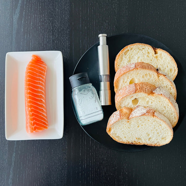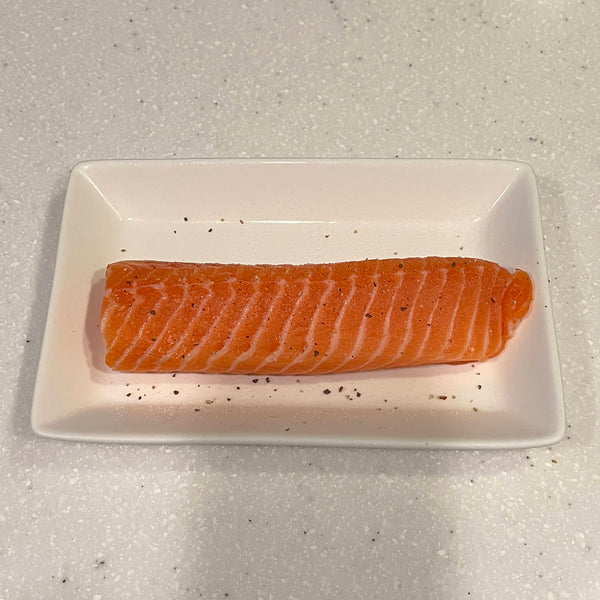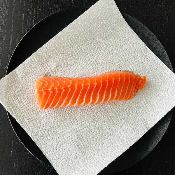 If you want the salmon to remain rare, it’s best to use a thicker sashimi block. Thinner blocks cook more easily, resulting in a less rare texture. In this recipe, we use a salmon sashimi block about 4–5 cm thick.
