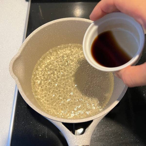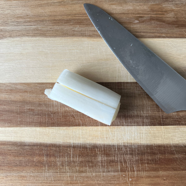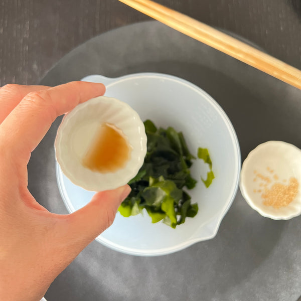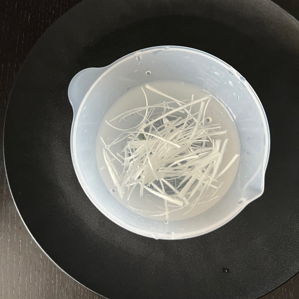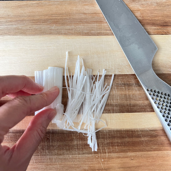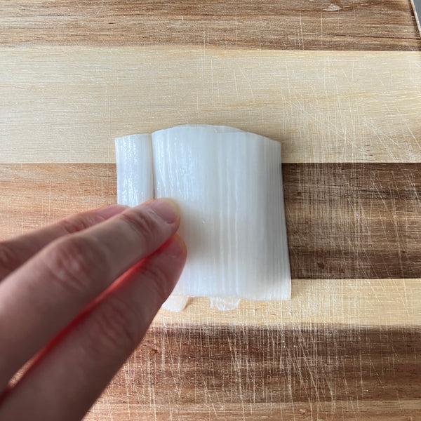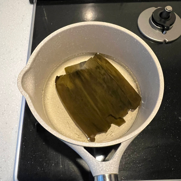 For the dashi, we are using dried kombu seaweed. Usually, dashi soup used for udon is made with both dried kombu and bonito flakes. However, in this recipe, we use only kombu, which gives a mild yet elegant flavor and provides umami to the dish.