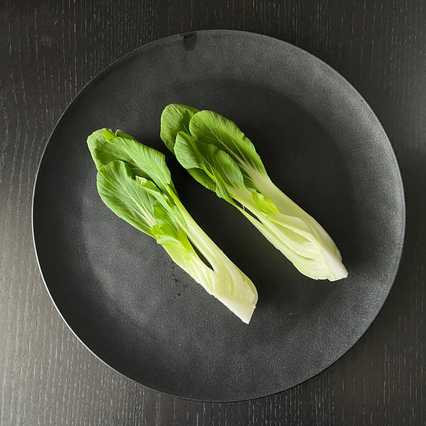 We chose bok choy for its crunchiness, which adds a nice balance to the dish and offers a variety of textures in each bite. To preserve the texture and enhance its flavor, it is quickly stir-fried with sesame oil. The key to making the bok choy topping is speed.