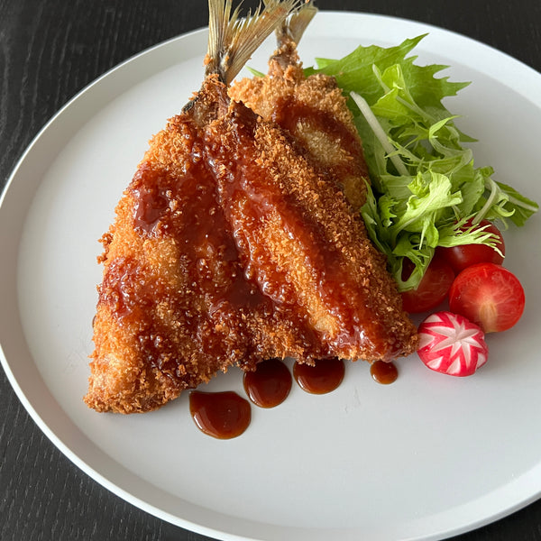 Enjoy freshly deep-fried aji with thickened Worcestershire sauce, ponzu, lemon juice, or your favorite sauces.