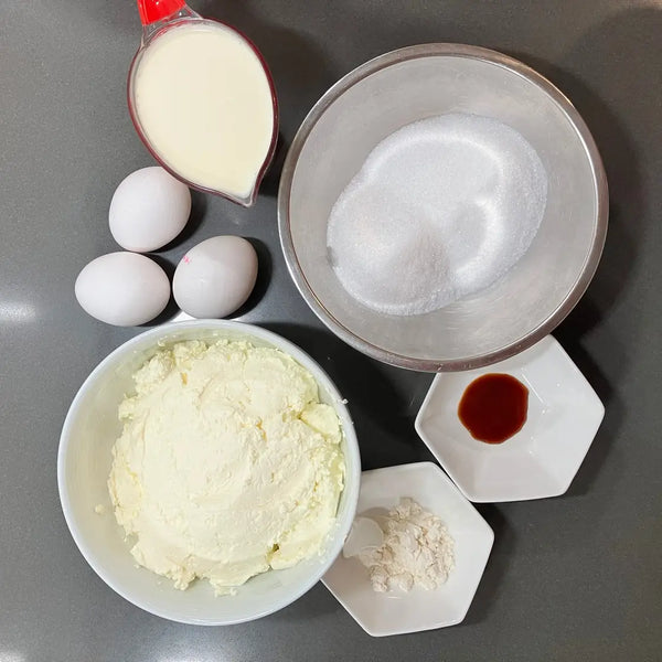 To make this Basque cheesecake, you only need very few ingredients. Compared to other cheesecakes, more quantity of cream cheese is used.
