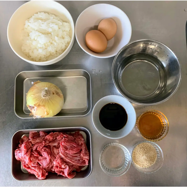 In this recipe, we are going to introduce a version of gyudon served with onsen tamago. Although onsen tamago may seem similar to a half-boiled egg, the egg white is soft and jelly-like, while the yolk is moderately firm. It makes the perfect topping for gyudon!