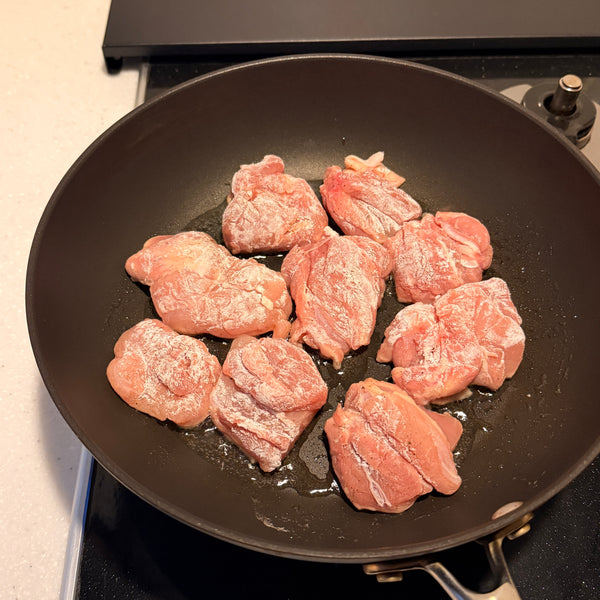 • Pat the chicken dry before coating with potato starch. Removing excess moisture helps the coating adhere evenly and promotes better browning.