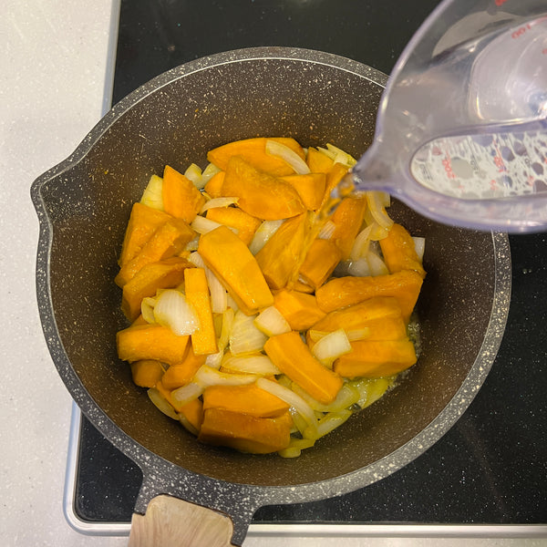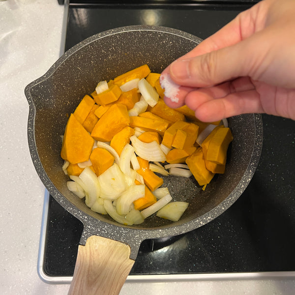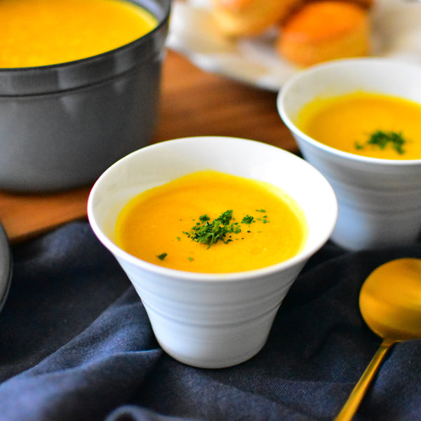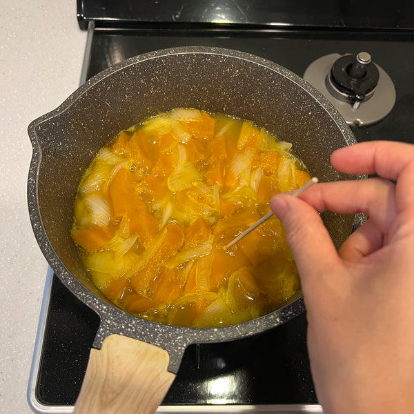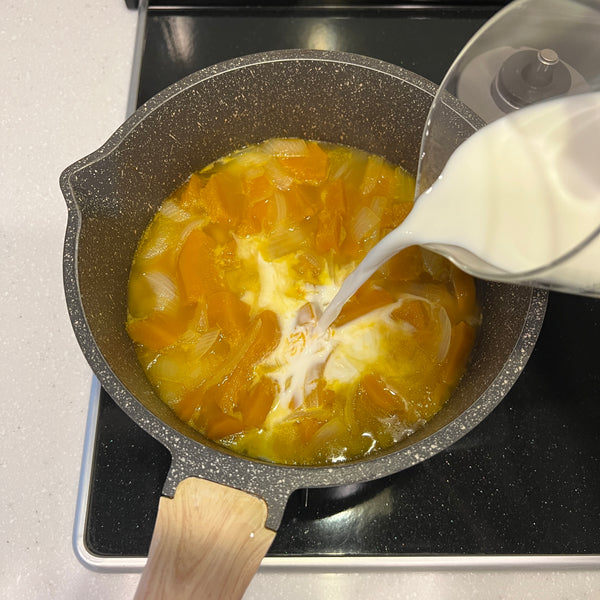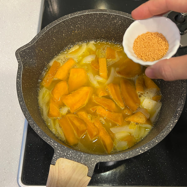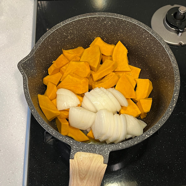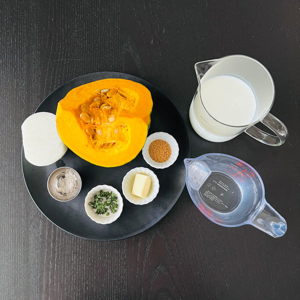 Today, we’re sharing a simple recipe for kabocha soup, made with just four ingredients: kabocha, onion, milk, and butter. Although this soup isn’t a traditional Japanese dish, it's widely enjoyed across Japan and is a popular menu item at cafés, restaurants, and even supermarkets. Known in Japan as “kabocha no potage,” this smooth and creamy soup draws inspiration from the French word “potage,” which typically refers to thick soups.