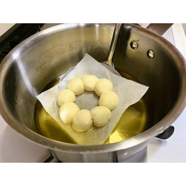 These mochi-like donuts, also called Pon-de-rings, are made from 8 small dough balls connected together in a ring. Biting into one reveals a delightful contrast: a lightly crisp outside with a chewy, satisfying inside.