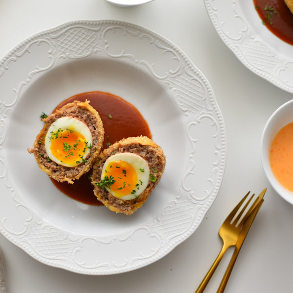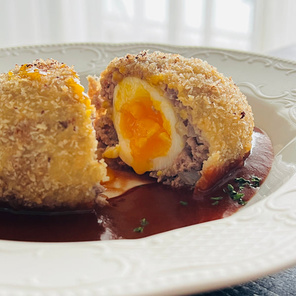 Japanese-style Scotch eggs have a mild taste, so the sauce is key! A ketchup-based sauce is common, but tonkatsu sauce, demi-glace, or even a bold mix of herbs and spices to give it your own unique twist.