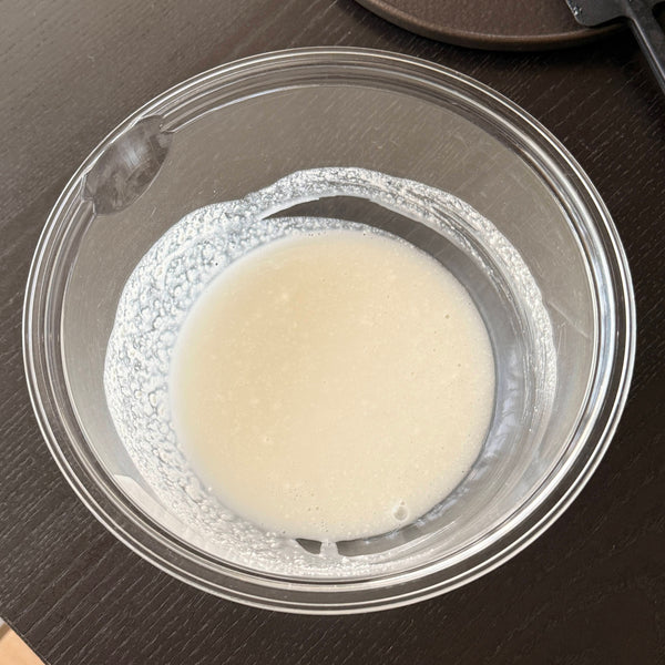 Wakaayu consists of two layers: a pancake-like outer layer and soft mochi (gyuhi) inside. Some versions also include sweet azuki bean paste. Gyuhi is made from mochi-ko or shiratama-ko (glutinous rice flour), which is essential in many wagashi, including daifuku and nerikiri. For simplicity, this recipe uses shiratama-ko and a microwave method.