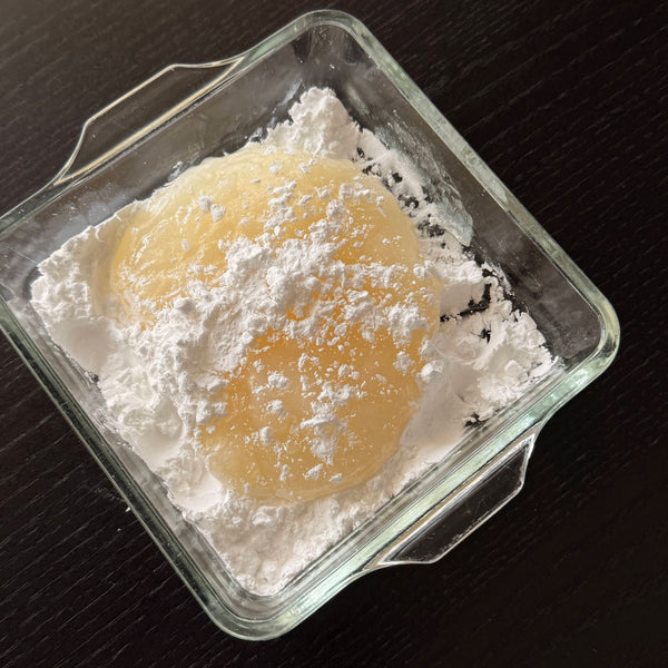 Jusou (baking soda) is used as a traditional Japanese leavening agent. It makes the dough expand more sideways, adds a slightly yellow color, and can taste bitter if overused. Baking powder can be substituted in double the amount.
