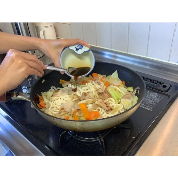 This time, we will introduce a sauce-flavored Yaki Udon recipe that is well-seasoned and of course tasty. Serve with toppings such as dried bonito flakes, aonori (green laver), pickled red ginger, etc. as you like. We hope you’ll enjoy our Yaki Udon recipe!