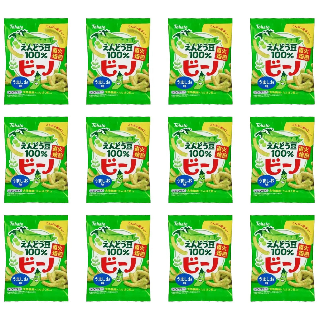 Tohato Beano Fire Roasted Green Pea Chips 56g (Pack of 12)